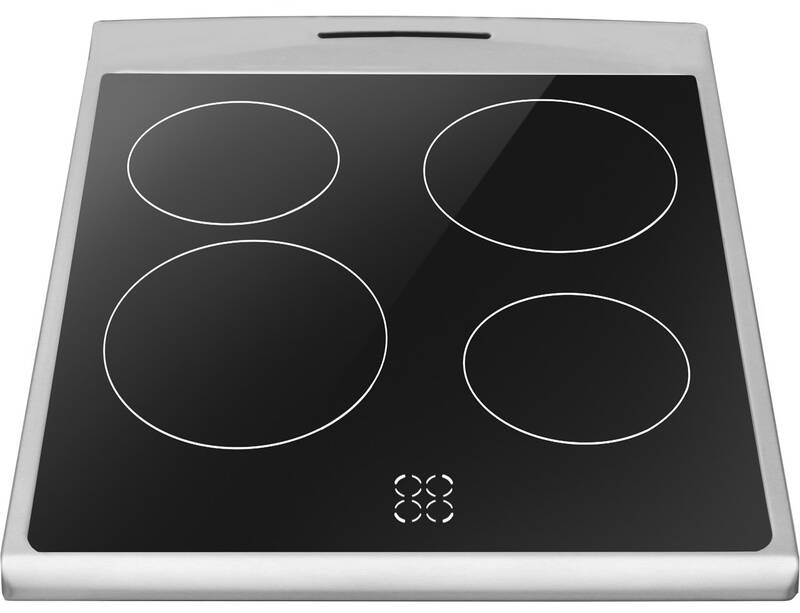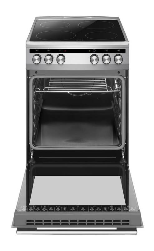 prenosný varič Voľne stojaci sporák Elektrický Keramický Strieborná • Typ produktu: Voľne stojaci sporák, Farba: Strieborná, Systém ovládania: Otočné, Dotyk • Typ varnej dosky: Keramický, Počet varných zón: 4 zone(s), Typ horného povrchu: Sklokeramická • Veľkosť rúry: Stredná, Zdroj napájania rúry: Elektrický, Čistý objem rúry: 68 L • Spotreba energie (konvenčná): 0,8 kWh, Príkon (elektrický): 7800 W, Stupnica energetickej účinnosti: A +++ až D • Šírka: 500 mm, Hĺbka: 600 mm, Výška: 850 mm